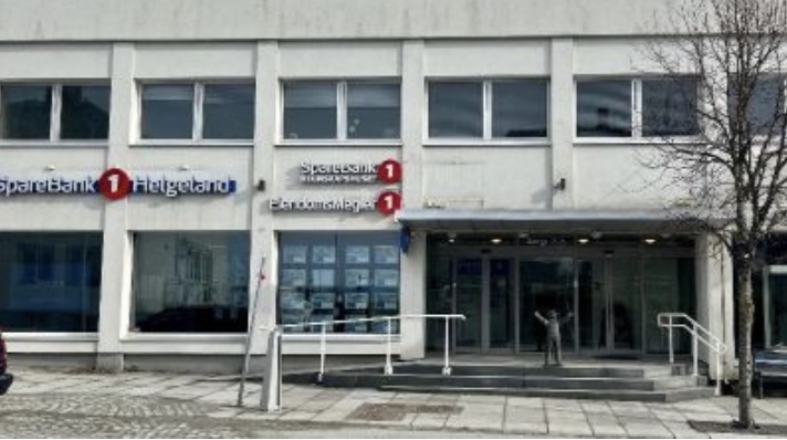 Slik ser bygget ut i dag. Sorenskriverkontoret lå i 2. etasje til venstre for trappeoppgangen og Brønnøy kommune hadde lokalene sine til høyre over gangen.